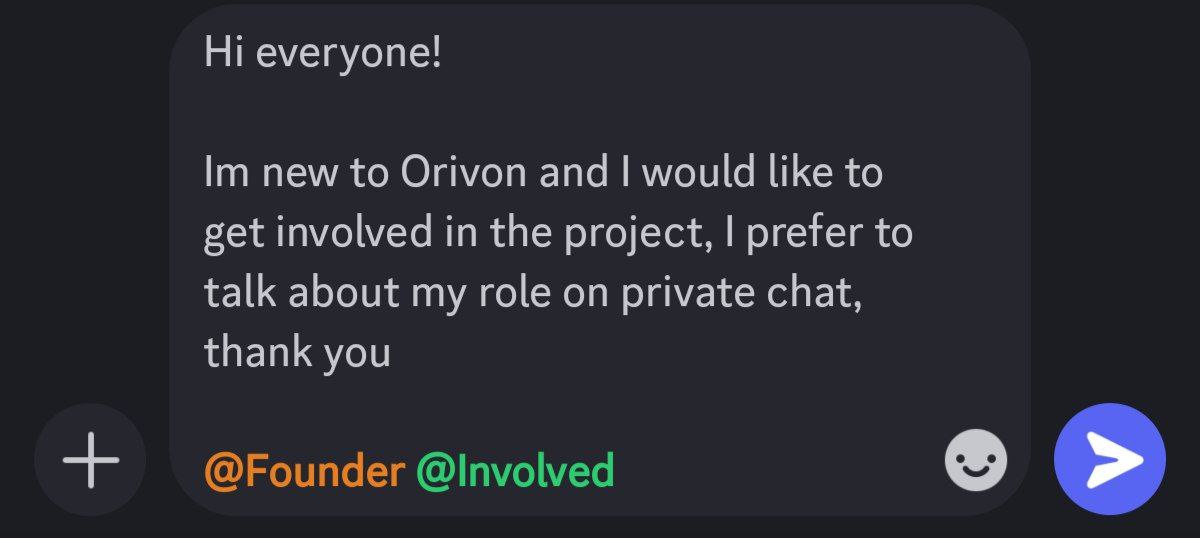 After that, one of our team will contact you in private and we will lead you towards becoming part of Orivon